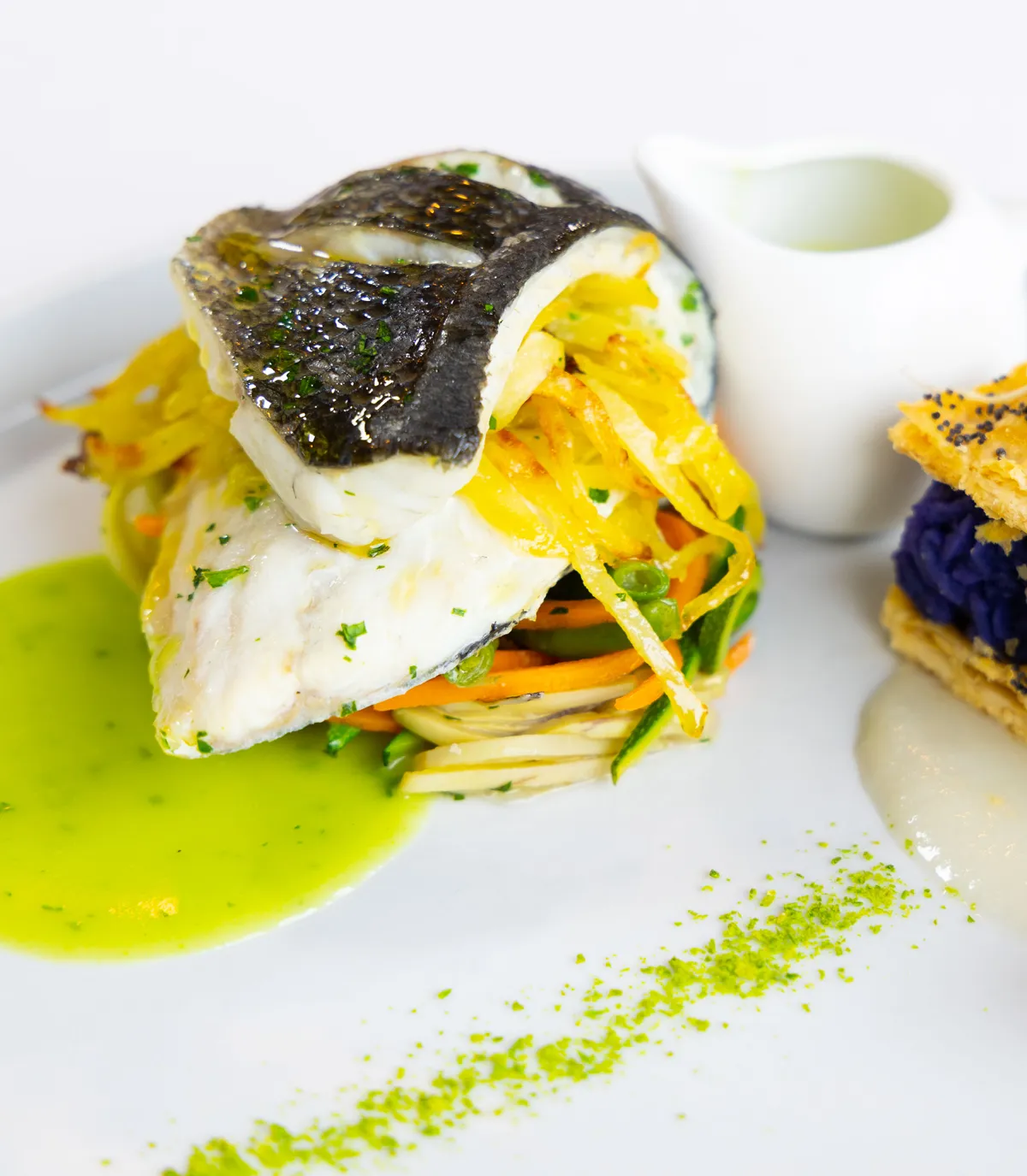 All’interno della Sala Rageto, ampia e luminosa, ogni portata viene servita con cura, rispettando i tempi dell’evento e offrendo un’esperienza rilassata e conviviale. Ogni piatto è un equilibrio tra estetica e sapore, realizzato con ingredienti selezionati e ispirato alla cucina mediterranea contemporanea.